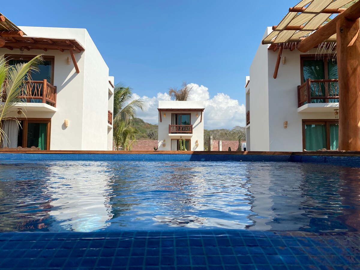 🌴 Elvis’ Surf Shack at Casa Akaw, La Saladita 🌊 Cozy beach retreat just steps from La Saladita’s famous long wave. Perfect for surfers, couples, and travelers seeking relaxation. Enjoy A/C, Wi-Fi, kitchen, pool, coworking space and terrace sunsets in a safe, tranquil community. Only 40 min from Ixtapa-Zihuatanejo Airport, with local seafood and cafés nearby—your authentic surf getaway awaits!