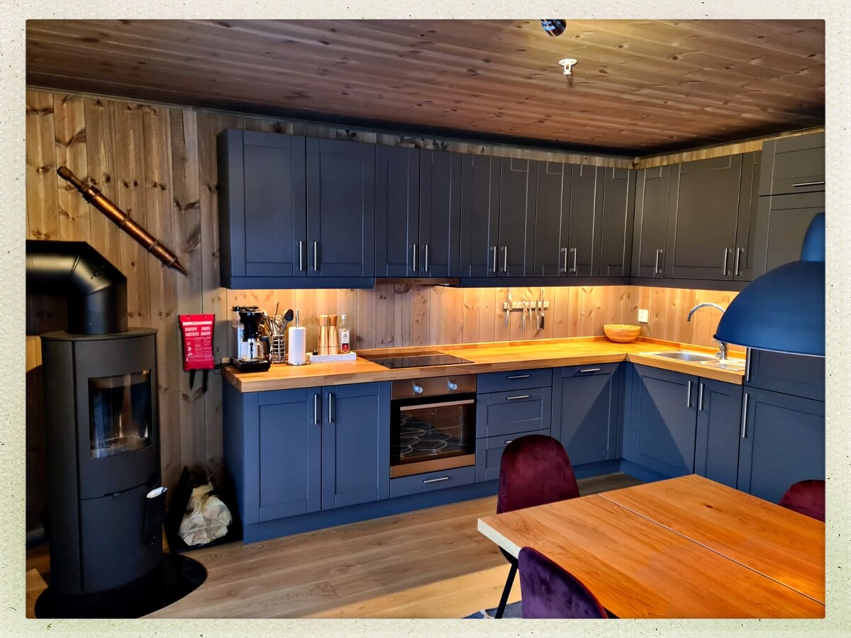 The cabin is built in solid timber and is 130 sqm with a terrace of the same size. It is beautifully located with good views of the valley and the mountains. 4 bedrooms, 2 bathrooms, sauna and heating cables in most floors. Bedroom, kitchen and bathroom furniture are made of solid wood in Norwegian traditional style. It has a large open kitchen/dining room and living room with fireplace, TV and good sound system. Modern, but in a cabin style and you drive all the way to the door. On the large terrace there is a private outdoor fireplace, fire pan and outdoor furniture. Ski in/out. Printer.