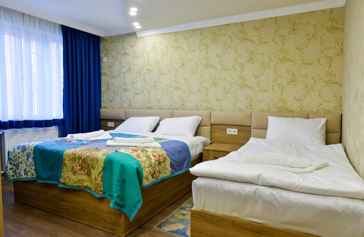 The apartment is located in one of the best streets in Kutaisi, approximately 50 steps from “the white bridge”. It is very close to all tourist attractions. The flat is on the 5th floor (accessible by elevator) and has a balcony from where our guests can enjoy the beautiful views of the town. The apartment is brand new. All rooms come with individual heating. The apartment also provides a cooling system. A fridge, washing-machine, TV, free wifi, and kitchen utensils are included.