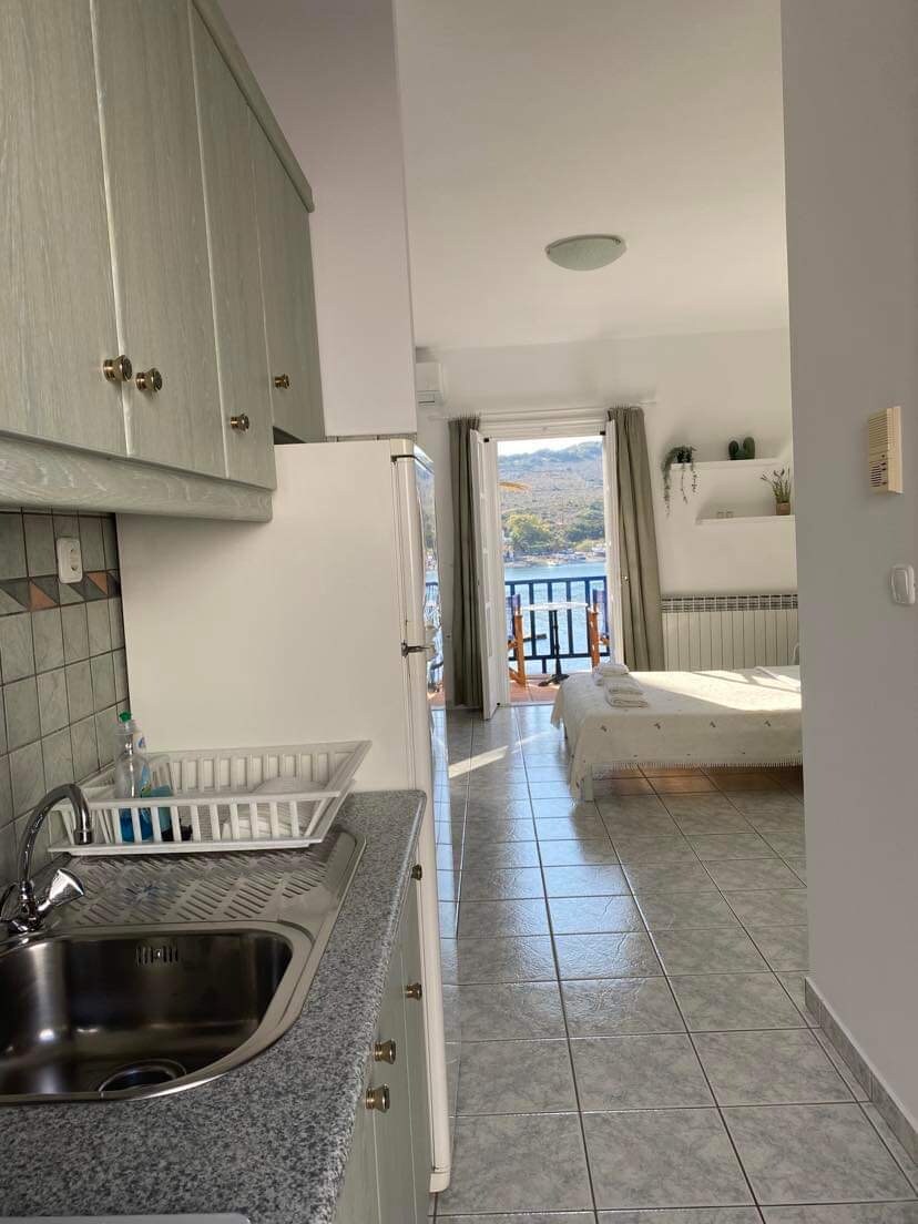 Welcome to Almi Guesthouse, a tiny jem, literally on the sea. The guesthouse consists of a single open space with a traditional dome ceiling and a bathroom, a total of 18sqm. Outside there is a paved little yard which leads to the edge of the rocks. The building was reconstructed in 2019 and it is located on the underside of the road that connects the Bridge with the gates of the Castle, near Kourkoula, a natural pool.