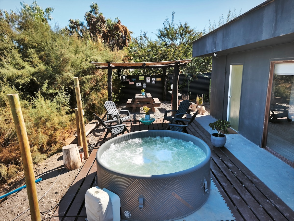 A cozy uncertain cabin in the Tulahuen valley, surrounded by nature, fruit trees, in a quiet and private atmosphere, ideal for a rest and total disconnection. You can enjoy a beautiful night sky, go trekking in the surrounding hills, and the river is located 5 minutes away on foot (with water pools) for bathing.