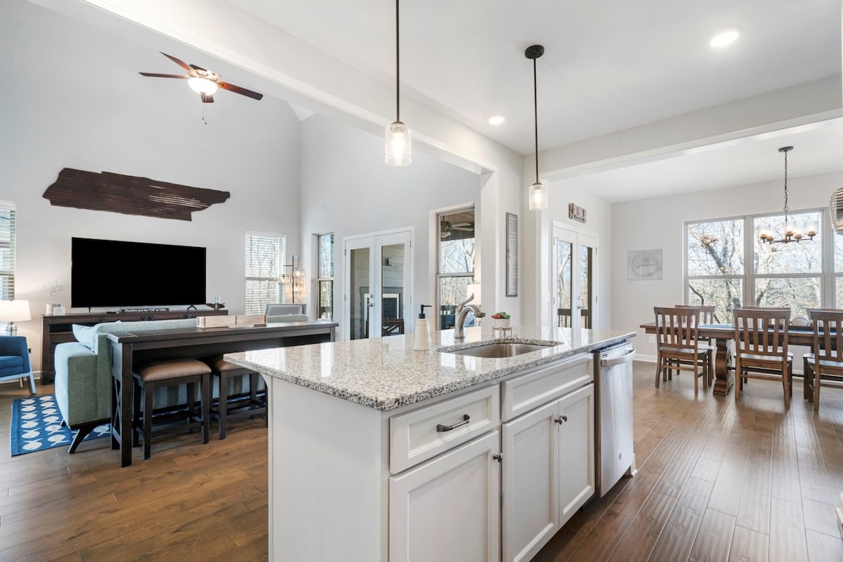 The Cottage is located within the beautiful Reserve at Holiday Landing, on the amazing Tim’s Ford Lake. Enjoy the community dock, endless lake activities, hiking trails, nearby attractions, and food/entertainment at Blue Gill Grill within the comfort of a modern lake cottage. Fenced Backyard for Furry Friends: We know that your furry companions are part of the family, and that's why we've designed a secure and spacious fenced backyard.