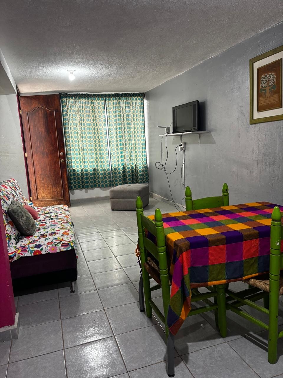 "Beautiful double-ambient accommodation with autonomous access and absolute privacy, workspace, Wi-Fi, kitchenette, and everything needed to prepare meals Excellent location. It's located on an avenue, 20 minutes from AIFA and Cuautitlán suburban train, with public transportation right at the doorstep Suitable for up to 4 people (using the sofa bed). The accommodation is on the third floor of an apartment building. We'll be delighted to welcome you and offer a comfortable and peaceful stay