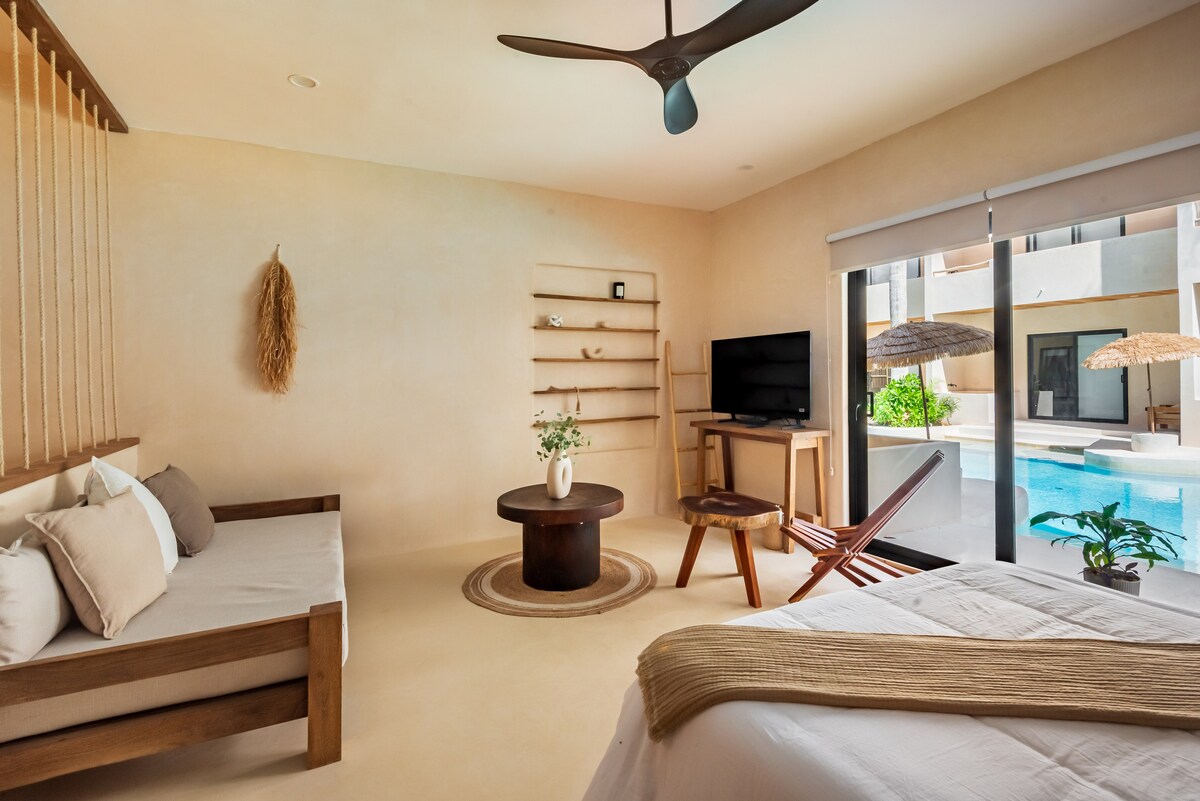 INCREDIBLE 1-BEDROOM LOFT WITH DOUBLE HEIGHT AND DIRECT ACCESS TO THE POOL. ✅Includes 2 Bicycles and Scooter ( checa conditions ) ✅ATV (rent) Live the Tulum experience in an eco-friendly design space, surrounded by gardens and with direct access to the main pool from your balcony. Located in one of the safest and most privileged areas of Tulum, with unparalleled amenities, including a natural cenote, fully equipped gym and a spectacular rooftop with infinity pool