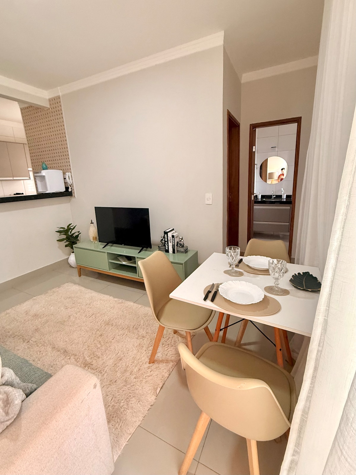 Modern and comfortable apartment, 1 covered parking space, well located in the Olinda neighborhood, in the best region of Uberaba! It is 700m from UNIUBE and the airport. Surrounded by bakeries, restaurants and supermarkets. Easy to access location! The apartment has Wi-Fi, air-conditioning, microwave and washing machine, coffee maker and toaster, etc. Ideal for those looking for practicality and comfort. Bed linen and towels✅ included Key 🔑 pick-up at any time 👉🏻 Approval within 15 minutes 🚨📞 :34-98406-6871