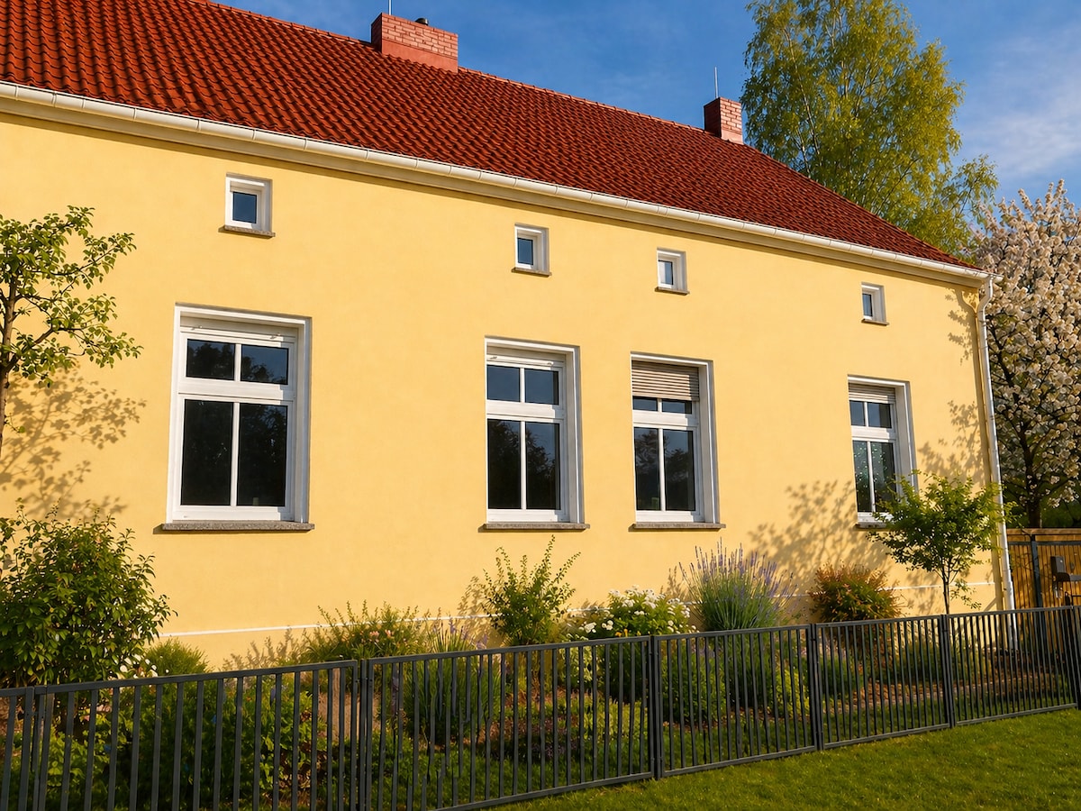 Enjoy the tranquility and security of these ancient walls. Surrounded by ancient trees in the Mecklenburg Lake District. Your apartment is on the 2nd floor and was carefully renovated. We rebuilt the old clay frameworks, uncovered the ancient floorboards and only the finest clay paint was used on the walls. The hideaway is rounded off by a small cast iron fireplace for the evenings and a private sauna on the edge of the field... We love children 🧡🌟 4 cats and 1 dog live on the farm ;-)