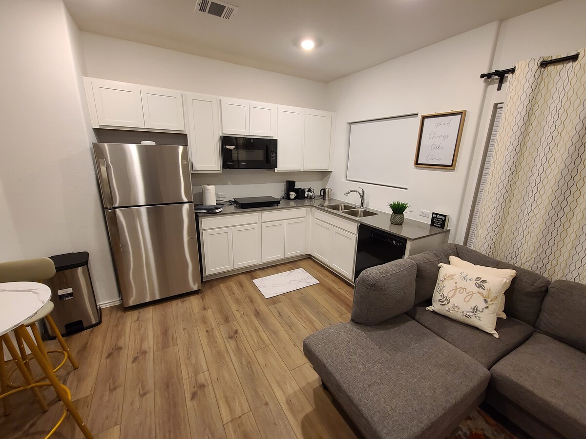 Beautiful and Cozy Tiny Home in Kyle with private patio and your choice of parking right in front of the house. Full sized bed in Loft , Small futon sofa for an extra person like a child or young adult. fully equipped kitchen, full bathroom, Private parking Space available. This home has the comfort of your own home with Wi-fi and Smart TV. You won’t forget your time in this romantic, memorable place. Short term and Longer Stays welcome!