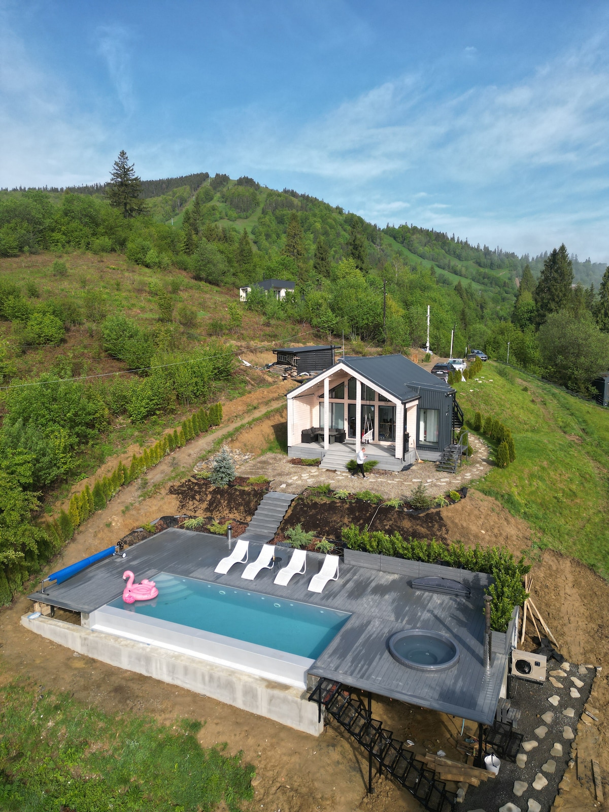 Rest Hub - це комплекс з 2-х котеджів, які знаходяться на ділянці понад 0,5 га. Котеджі розташовані таким чином, щоб гості з обох будинків не турбували один одного. Цей котедж має власний басейн ( тільки для мешканців котеджу) Кожен з котеджів має власний Чан-Джакузі (його вартість складає 4000 грн/6 год) Rest Hub - це відпочинок в горах без сусідів і сторонніх людей.