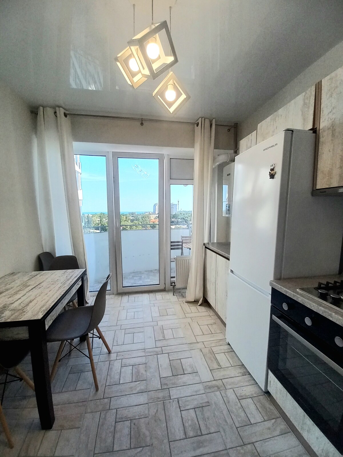 Forget about your worries in this quiet, secluded home. A beautiful new snow-white house is located in a green, ecologically clean area of Odessa, 10 minutes from the sea! The apartment is equipped with everything you need and is fully suitable for a comfortable stay. On the balcony you can have a cup of coffee while admiring the beautiful panorama of the sea and dense vegetation...