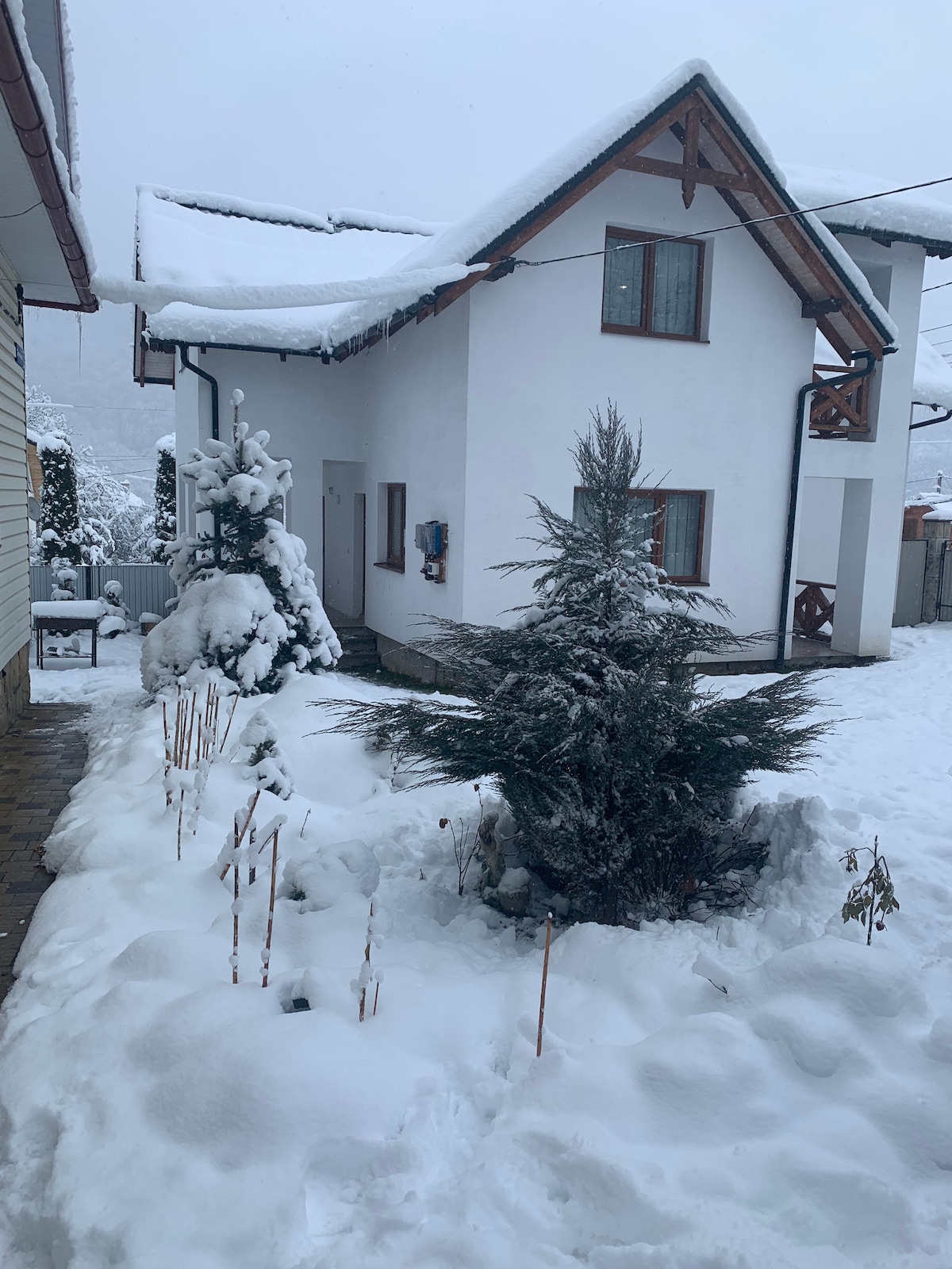 It looks like a cottage in Yaremche. 10 min. Walk to the city center and railway station. The cottage has a full size kitchen with a hall and 3 bedrooms in each bedroom has its own bathroom and shower. Bathrooms and the hall have warm floors. One of the bedrooms has a balcony with a great view of the mountains. There is also an exit from the hall to the terrace where there is a table with chairs. There is a grill and a swing.