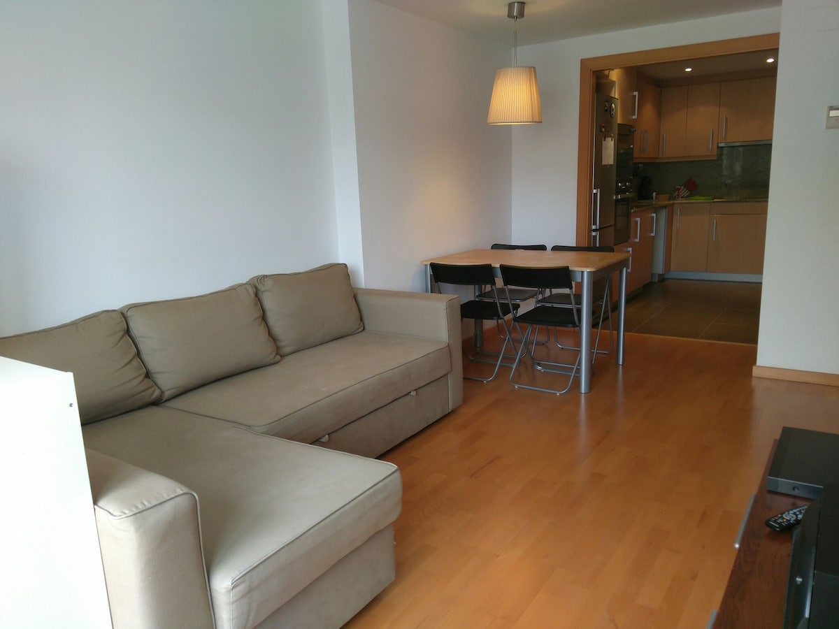 One bedroom apartment with double bed, dining room with a sofa bed, bathroom and kitchen. It is air-conditioned and equipped for both a leisure and business stay. Very well located, near both the center of Terrassa and the motorway that connects with Barcelona (20 min by car). Very quiet area, 5 minutes walk from the bus station and 10 minutes from the FGC station.