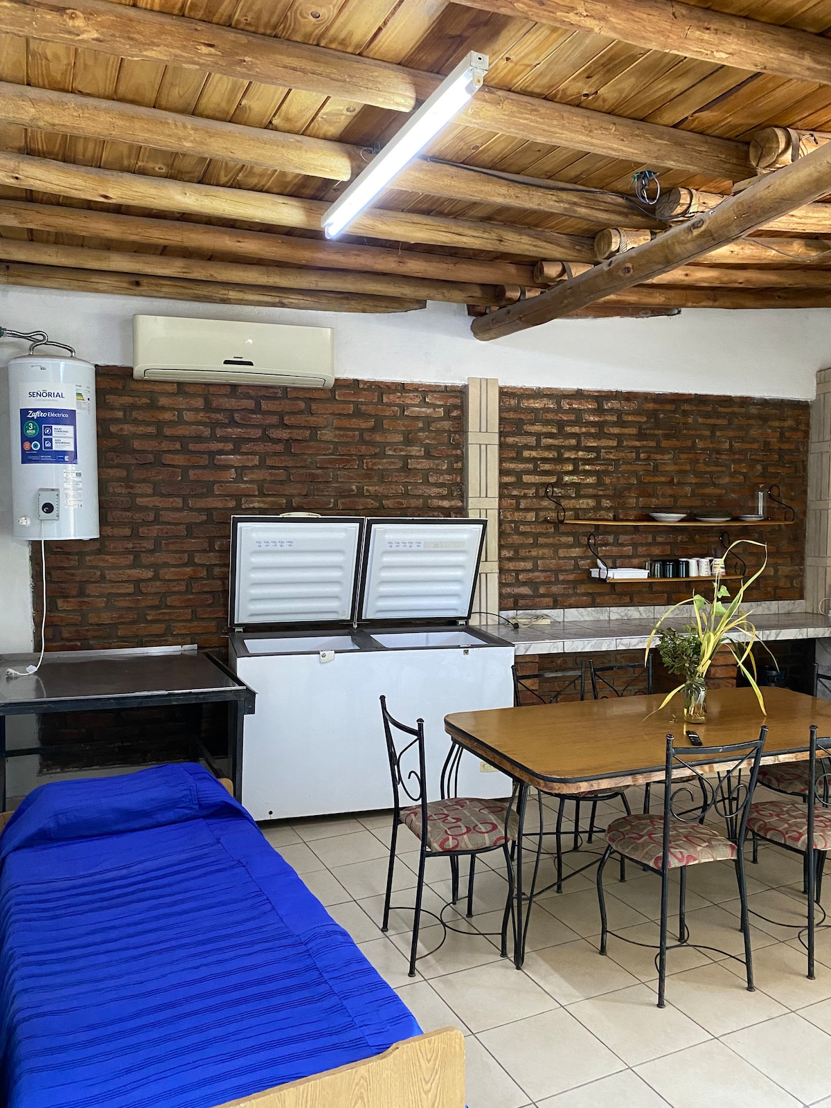Ground floor apartment, one bedroom, bathroom with bidet, kitchen-dining room, under counter, cupboard, electric tank thermos, microwave, electric oven and kettle, stoves, dishes, washing machine, refrigerator. Wi-Fi Internet, hot and cold air conditioning in two rooms. Security cameras, garage, automatic sliding gate, 2 wooden bunk beds, sofa, sheets, towels, grill. 43-inch Smart TV, iron, hairdryer. 20' from the Villicum circuit. 5' from the Costanera property. Bus stop at the entrance