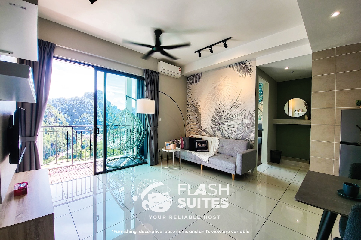 This studio features Onsen (water pump from nearby hot springs) and overlooks beautiful limestone hills. Lost World of Tambun is within walking distance. The unit is tastefully decorated and equipped with premium quality mattress (Napure Germany), Coway water dispenser, 55 inches Smart TV(Netflix) and fully air-conditional. The facilities of the apartment include an Onsen Pool (pump from natural hot springs), infinity swimming pool, gym room, sauna room and etc.