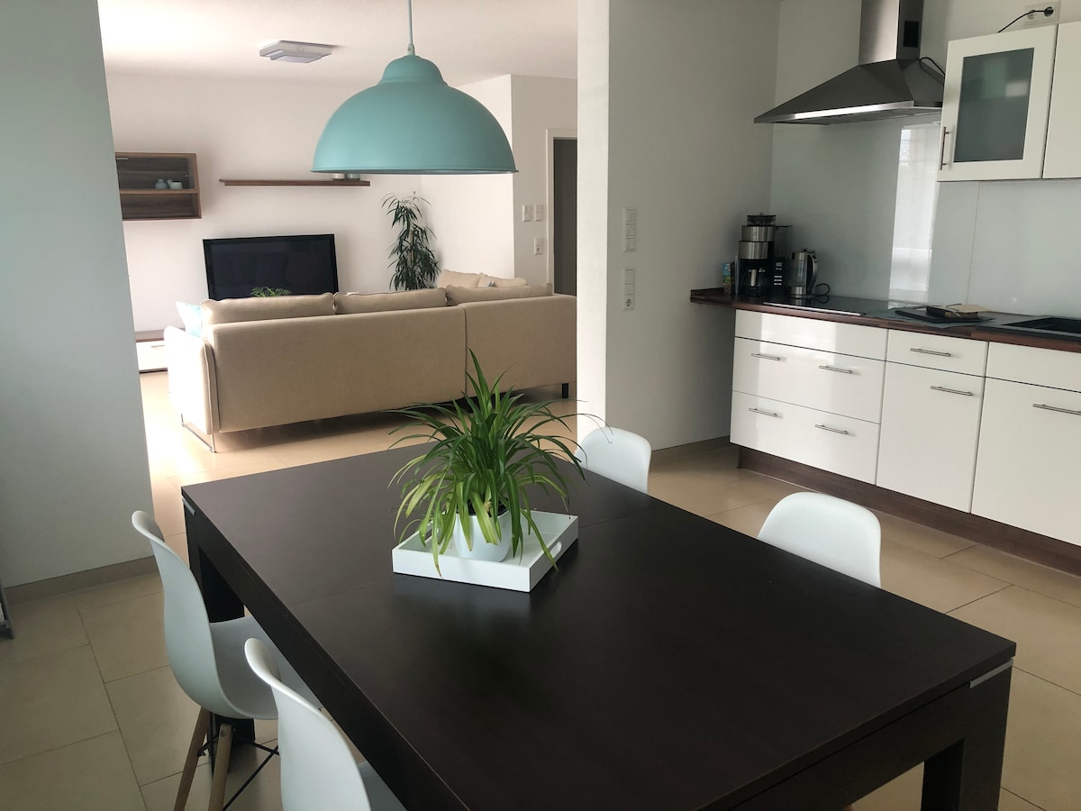 The apartment AM WEINBERG is quietly located, on the edge of the wine village of Pfaffenweiler, surrounded by vineyards in the beautiful Schneckental. With 119 m² and a large open 54 m² living and dining room, everyone will find a place to feel good. In the immediate vicinity there are numerous lakes & thermal baths that invite you to swim, Kaiserstuhl and the Black Forest for hiking & cycling (very good network of bike paths!). France (25 km), Switzerland (65 km) & Freiburg (7 km) & Europa-Park (40 km/30 min.)