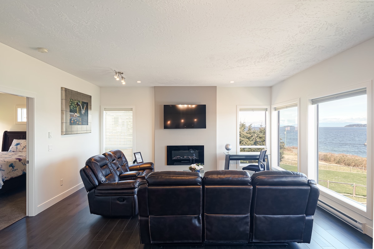Experience luxury while in a rustic gulf island ocean front setting. Prov. reg #H905175603 Find absolute tranquility & calm in your finely hand crafted suite. Sumptuous king bed, spa-like bathroom, your very own private infrared sauna w/ an ocean view. Unplug, unwind, and recharge. High end kitchenette finishings and comfy sofa for enjoying your evenings. Use our beach stairs and stroll the gorgeous rocky beach or walk down the quiet country road. Enjoy ocean views from every part of your space!