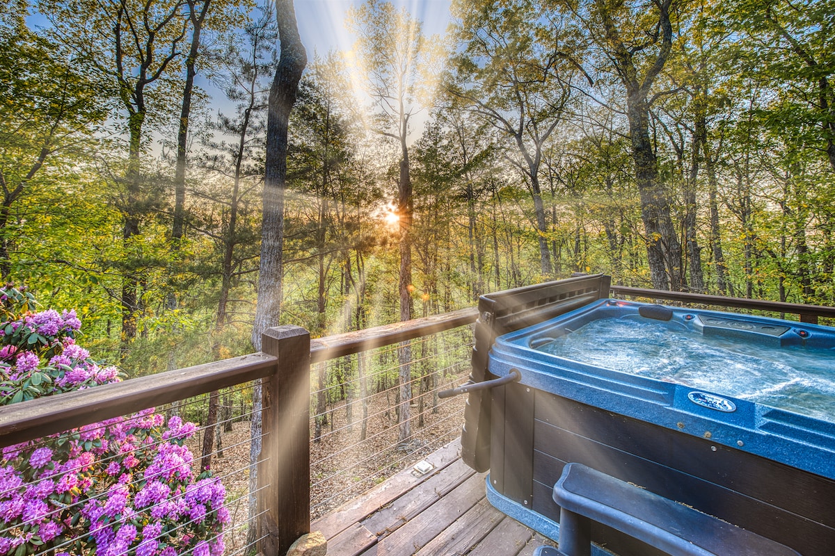 Retreat to the mountains and step into Cascading View Lodge where you will be greeted with incredible long-range mountain views. This luxury cabin is <20 min from downtown Blue Ridge. Come take in the mountain views on our screened in porch and spacious deck. We offer a fire pit underneath the stars and hot tub to enjoy with family and friends! For your comfort we offer 5 smart TVs, high speed WiFi, game room with arcade game and more, and a fully stocked kitchen! Let us help you plan your trip!