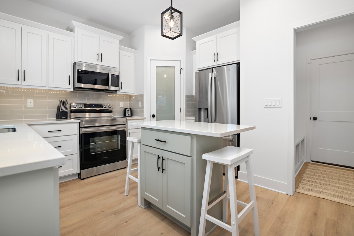 In downtown Lees Summit, our 2-bed, 1-bath Airbnb blends modern design with historic charm. Luxurious king-size bed in the master, a twin trundle bed in the guest room with dedicated workspace. Stylish bathroom with modern fixtures. Perfectly located for dining, shopping, and entertainment. Cozy living space, well-equipped kitchen. Fast WiFi. Your ideal home away from home in vibrant downtown. Just a short drive to Arrowhead / GEHA Field! Book now for an unforgettable Lee’s Summit adventure!
