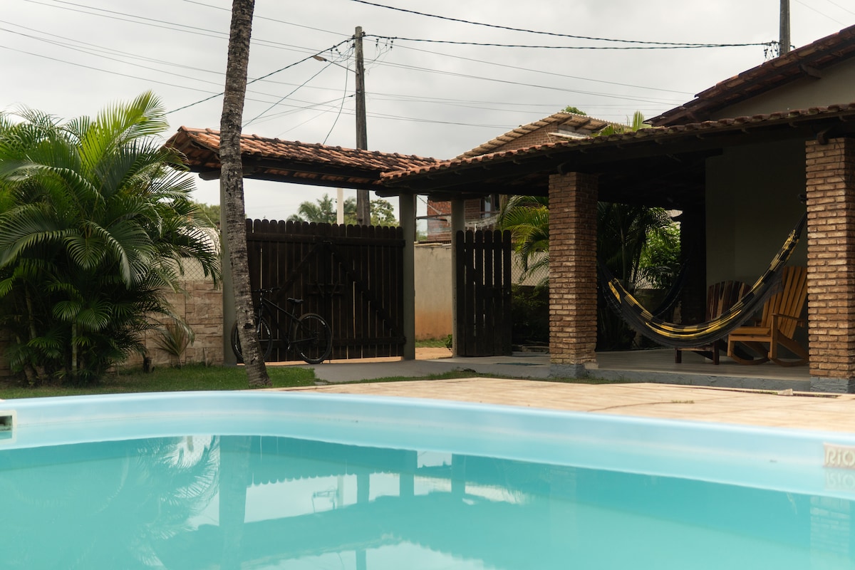 Charming 3-bedroom house, 2 bedrooms with double beds and 1 bedroom with 2 single beds, comfortably accommodates 6 people. In a beachfront condominium in Praia do Pé de Serra, Serra Grande/BA. A few steps from the sand, with air conditioning, fiber Wi-Fi, equipped kitchen, TV, gourmet space with barbecue, garden with sun lounger, shower and hammocks on the balcony. Modern and cozy style, ideal for couples or families seeking comfort, tranquility and direct contact with nature.