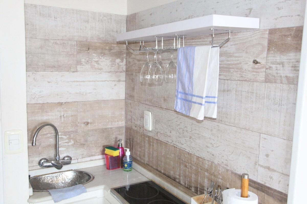 Apartment "4" inside the old "El Patio de las Glicinas" mansion, fully recycled. Loft with integrated living room and kitchen, and bedroom on the top floor. Ideal for couples. Very quiet, safe and quiet area in front of the square and close to shops and banks, a few blocks from the historic neighborhood and one block from the beach. Fully furnished, with air conditioning on both floors, TV and kitchen equipped with oven, microwave, coffee maker and toaster.