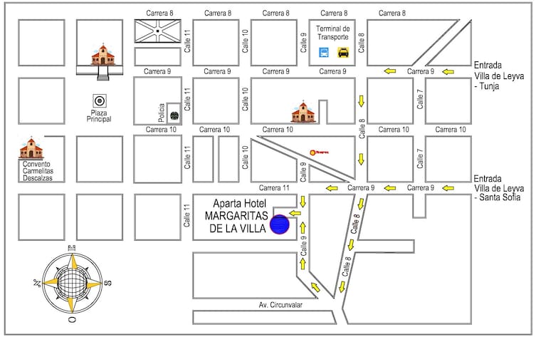 El Apartahotel Margaritas de la Villa se encuentra ubicado a tres cuadras de la plaza de mayor, en el centro histórico a tres cuadras del terminal de autobuses, cuenta con habitaciones con baño privado, TV de pantalla plana, agua caliente.
