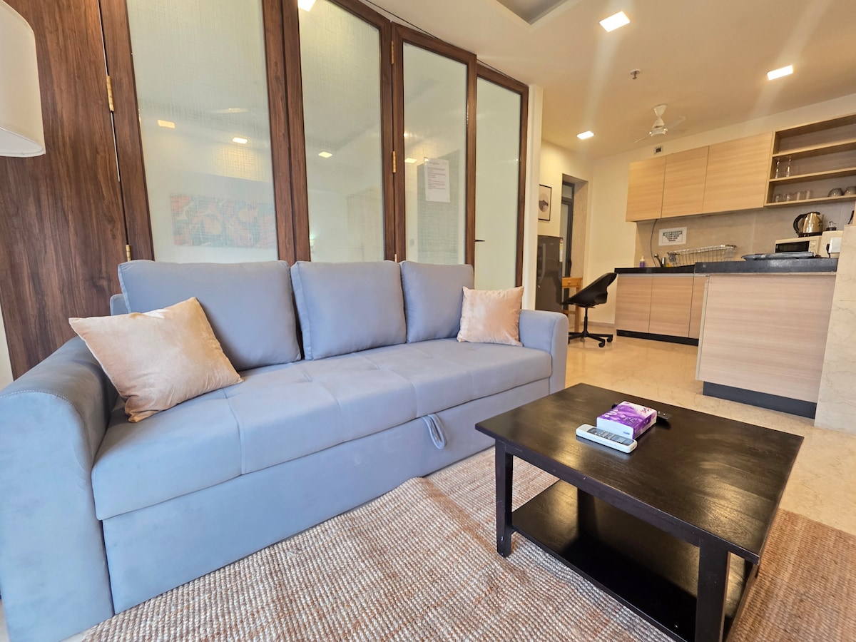 Welcome to Your Modern Day-Chic 1-Bedroom Apartment Retreat near BKC! With its minimalist design, ample workspace, entertainment options, and essential amenities, it caters to the needs of both business and leisure travelers! Features: ★ Large Work-Desk ★ Free High-Speed WiFi ★ Smart TV ★ Tata Sky with all HD Channels ★ Sound Bar ★ Microwave/Fridge ★ Air Fryer ★ Air Purifier ★ Water Purifier Book now and experience the perfect blend of modernity and comfort!