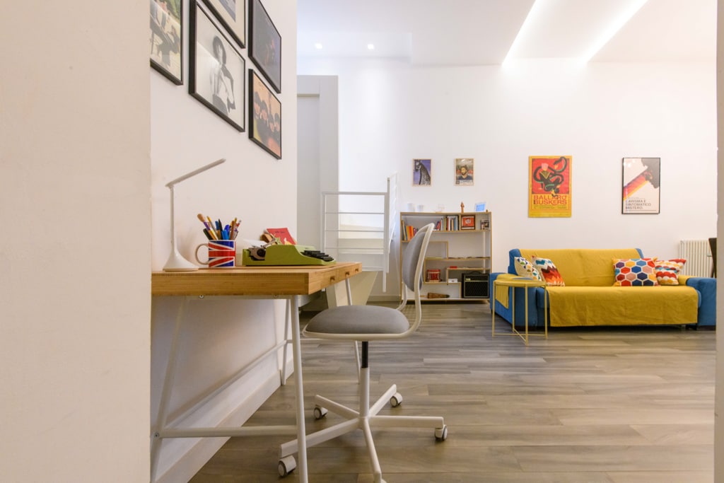 Super centrally-located apartment at the top of a palazzo in the heart of Kalsa, the trendiest neighbourhood in Palermo historic centre. If you manage to make it up the 4th floor of steep stairs (no lift), it will be worth it! The flat has been completely renovated by me, Roman architect who after 10 years of practice in London has decided to move to Palermo and open a studio here. The flat has 2 beautiful terraces, 1 bedroom 1 large kitchen living room, a study and 1 bathroom.