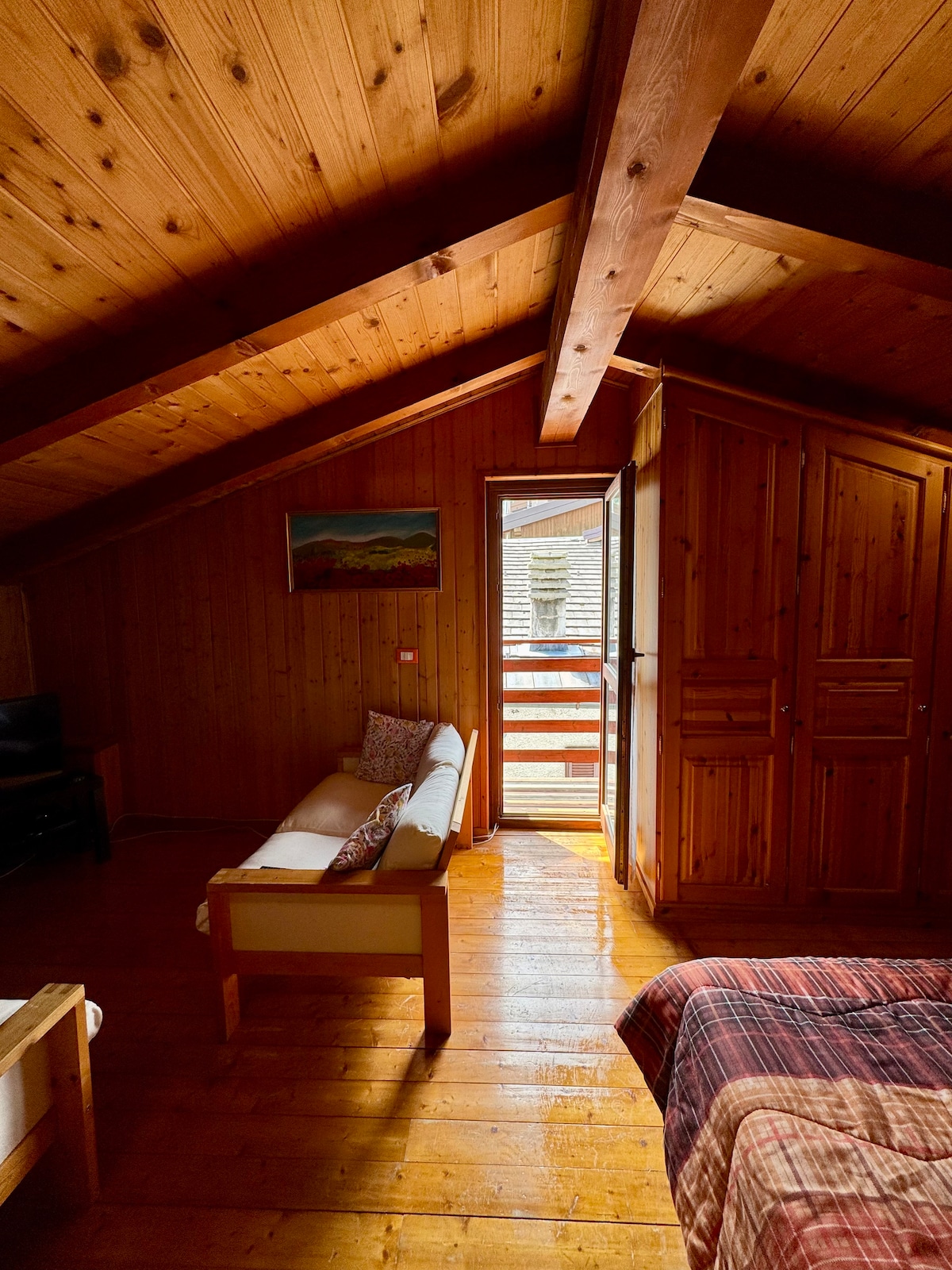 Esclusivo chalet con vista panoramica sul gruppo dell'Adamello. posizione tranquilla a pochi minuti dal paese di Villa dalegno,dove gestiamo il nostro agriturismo Belotti. RAGGIUNGIBILE SU STRADA STERRATA IN SALITA DELLA DURATA DI 5 MINUTI CON AUTO 4X4 E' compreso nel prezzo il servizio di trasporto bagagli con la jeep o il quad unico mezzo a salire in inverno . In inverno la strada è impraticabile causa neve, per cui è necessario salire a piedi, con una camminata di circa 20 minuti.