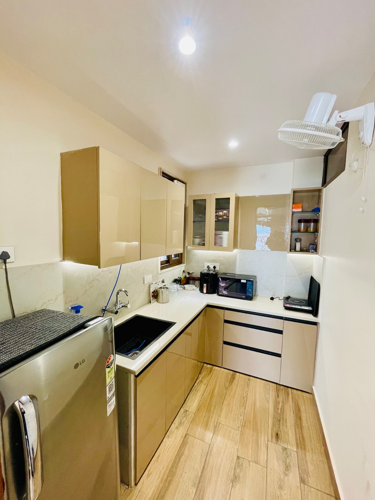 ✨Entire Modern 1BHK Apartment in Central Varanasi located in a safe, peaceful residential area, far from the chaos of traffic, surrounded by an open environment. We provide reliable local transport (auto or toto) 24 hours at a reasonable cost on demand at your doorstep for visit. ✨ Stay in comfort and style at our thoughtfully designed apartment, just a 10-minute ride to Assi Ghat – the cultural and spiritual heart of Varanasi. Ideal for families, friends, or small groups of upgto 4 guests.
