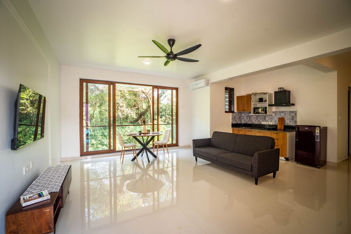 Please note - Apartment is on the ground floor Escape to the sun-drenched shores of South Goa with a stay in our charming 1-bedroom apartment. Nestled just moments away from the pristine beaches that fringe the coastline, our cozy retreat offers the perfect blend of comfort and convenience for your coastal getaway.
