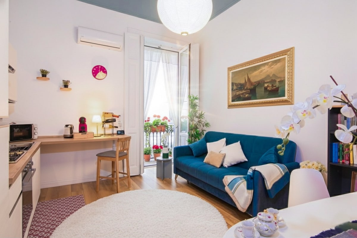 Luxury apartment: a combination of classic elegance and modernity, just renovated with JACUZZI and PRIVATE ROOFTOP of 90mq where you can admire the volcano Vesuvius. Located in a historical building on the 3rd floor without elevator in the heart of the old town, you can reach everything by walking. WiFi, PrimeVideo, Nespresso and luggage storage for FREE Points of interest • 2 min Duomo • 4 min Underground Naples • 6 min Metro L1 & L2 • 5 min Train Station • 10 min Harbour