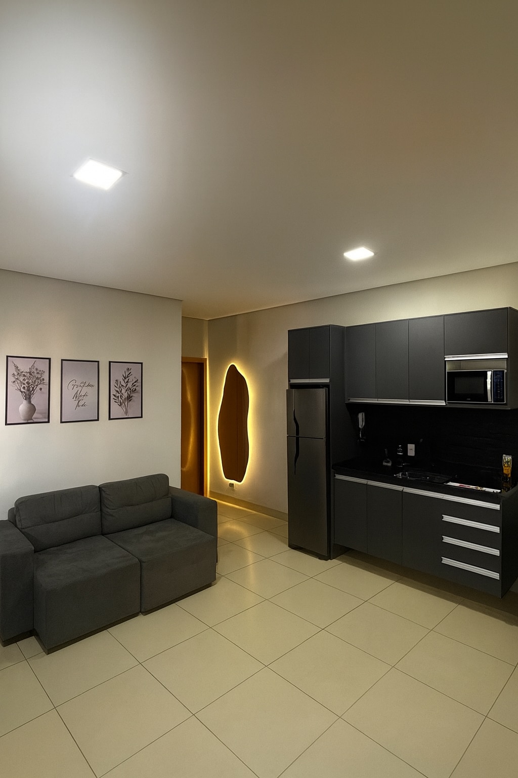 New and well located suite. All equipped with tasteful furniture that make the space cozy. Neighborhood safe, quiet and well located. Near the main points of Cuiabá.