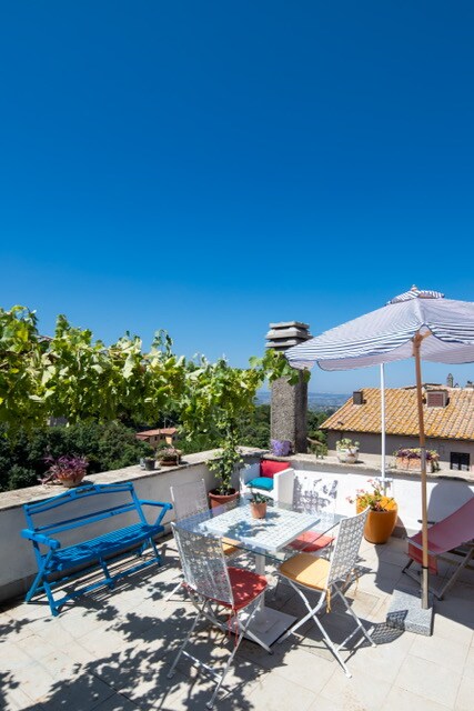 In the ancient village of Vallerano, a large and bright apartment consisting of two large rooms, an entrance with a small closet and bathroom, which an architect-photographer designed for herself, furnished with attention to detail and organization of spaces. A cozy and well-kept environment where you can relax, engage in your activities and set off for excursions in Tuscia, consulting the guides and information on the main places of interest available in the apartment.