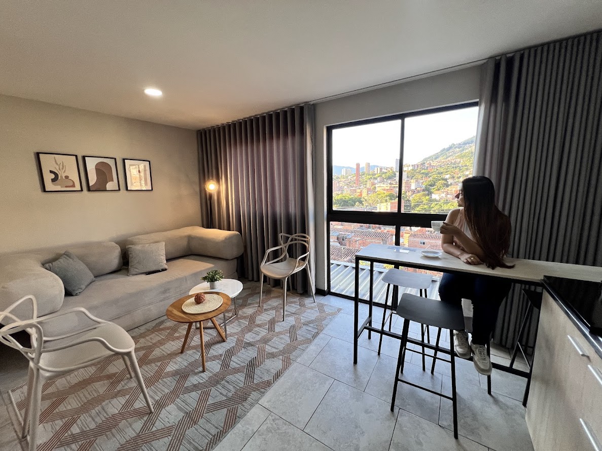 Stay in the heart of Medellín and experience the city with all the comfort you deserve. This apartment combines design, good energy and functionality so that you have a great experience, whether you come for work, rest or tourism. Great urban view of the city 3 well-distributed rooms with beds (1 double, 2 semi-double) Fully-equiped kitchen. Private washing area 2 functional bathrooms Centric location Building, reception and 24-hour security Easy check-in digital lock