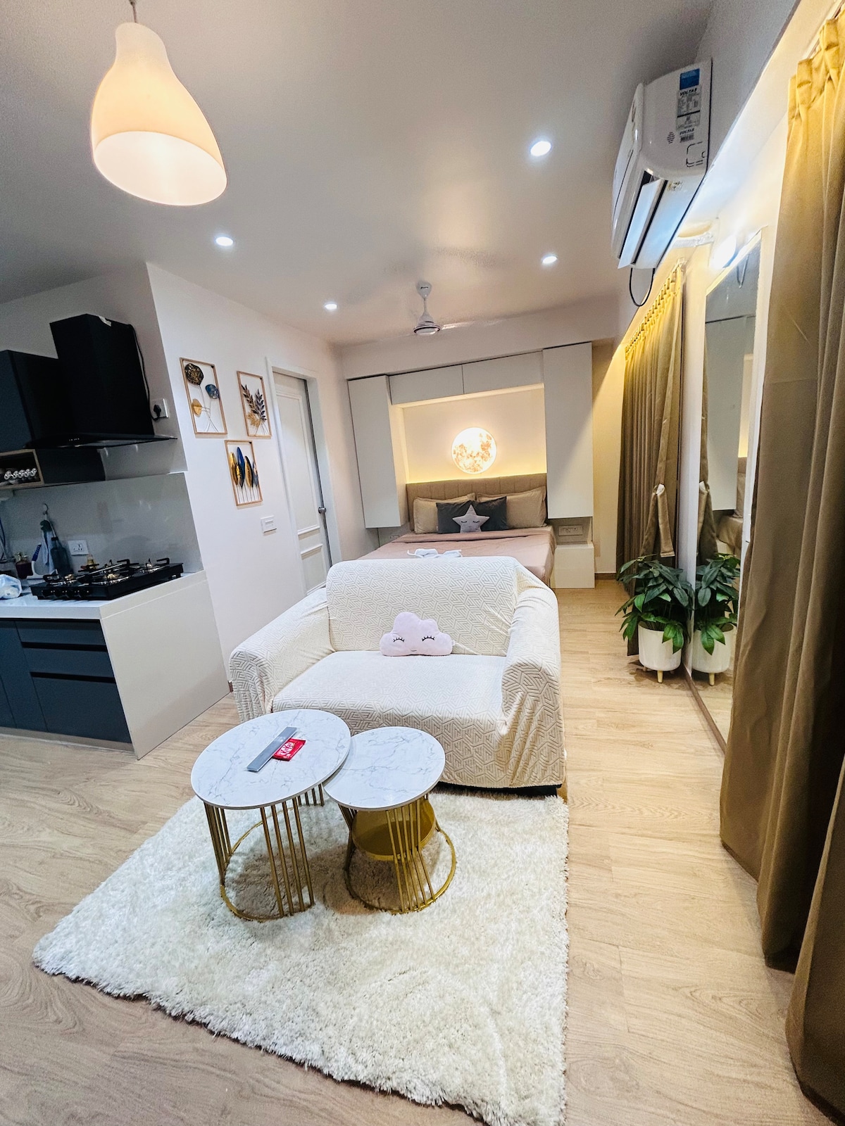 Welcome to Pune Airport's Finest Lounge Studio, a thoughtfully designed studio apartment in Viman Nagar, just minutes from Pune Airport. Get a peaceful nap with a cozy king size bed, luxe interiors. Thoroughly cleaned and a peaceful space. Unwind with coffee breaks in the ambient lighting, and a peaceful vibe that makes every layover or stay feel effortless. Perfect for business travelers, couples, or anyone who loves a stylish pause before takeoff.