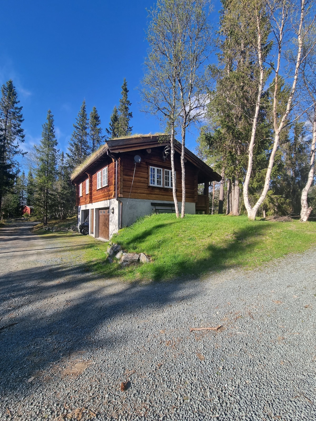 Cosy cabin with a fantastic location and its own shoreline by Lake Totak. The cottage has 2 bedrooms, a spacious living room with a corner sofa (can also be used as a sofa bed if needed), a cosy fireplace, a large dining table, a loft, a well-equipped kitchen and a bathroom with a shower and washing machine. Large terrace with a dining table and a view of the lake and the mountains. We have our own marina, boat ramp and a boat, 2 kayaks and 2 SUPs that can be rented. 15 min to the ski centre.