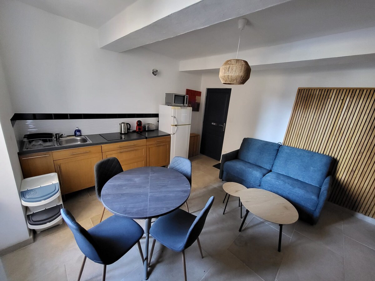 Studio of 20 m2, (fully equipped, and air-conditioned), located on our property, private parking, swimming pool just for you!! OPTIONAL (extra charge) its ALINA SPA "Halawann" model for 2 people!! Located in the village of Violès, a stone's throw from the Dentelles de Montmirail, 40 minutes from the Giant of Provence "Mont Ventoux", come and visit the many wineries of our region, our markets, hikes... 10 km from Orange or Vaison-la-Romaine, 30 km from Avignon (festival).