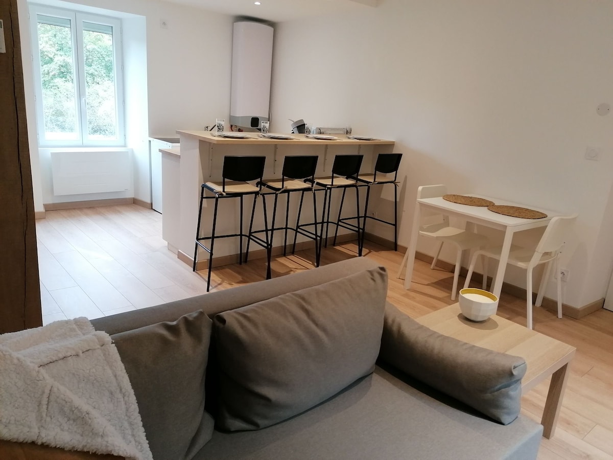 Welcome to our charming renovated barn, nestled in the heart of the countryside. This fusion between the rustic charm of the barn and modern comfort promises you an authentic and relaxing experience, accentuated by our main asset: a spacious XXL jacuzzi offering different massages, available throughout your stay. Here you will find a true haven of peace, ideal for total disconnection and rejuvenation in the heart of nature.