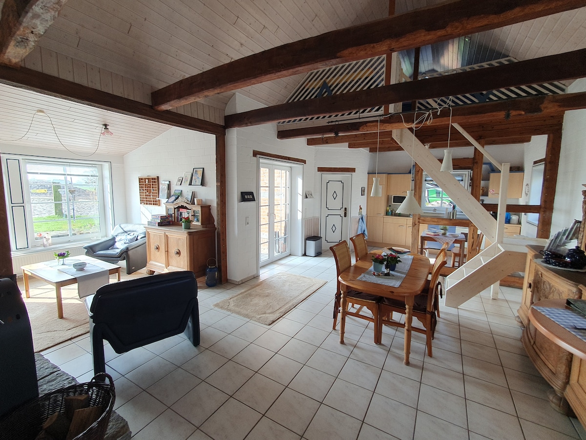 On the northern outskirts of the city of Rheda-Wiedenbrück you will find our apartment, idyllically located between fields on a quiet farm complex with large old trees - our 32 oaks! The apartment, 45 square meters, is a gallery apartment with a cozy, fully equipped kitchen. Up in the gallery is a 1.80 m double bed. The living area on the first floor has a sofa bed (for 2 people) and a bathroom. The apartment also has a small terrace.