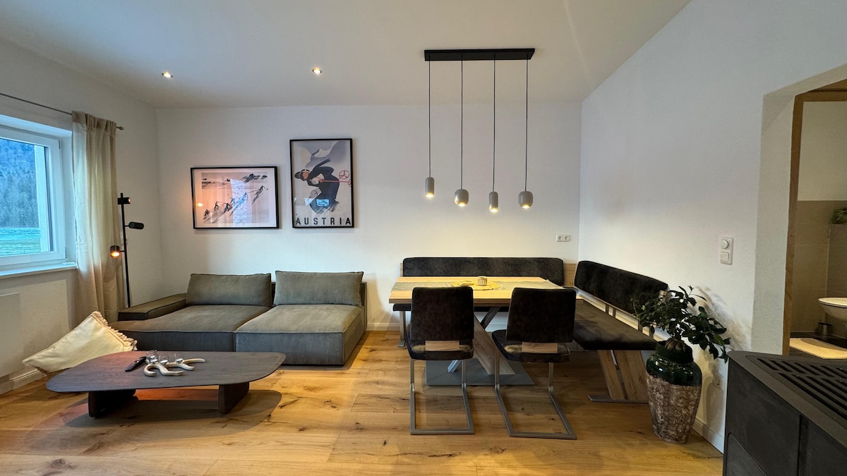Welcome to our modern but warm House in the middle of the Tyrolian Alps. The Maisonette is build in a one Family House with its own Garden and Entrance. The Zur Loipe is just 15 min Walk to the Center and Shops. Just 5 min to the several Skiing Lifts by Car. For all our Cross Country Enthusiastics the Loipe is located just in front of the Garden, no Car is needed neither long Walks. Our House is in a Dead End Street that means no traffic, just the Residens. Suitable for a couple up to 2 kids