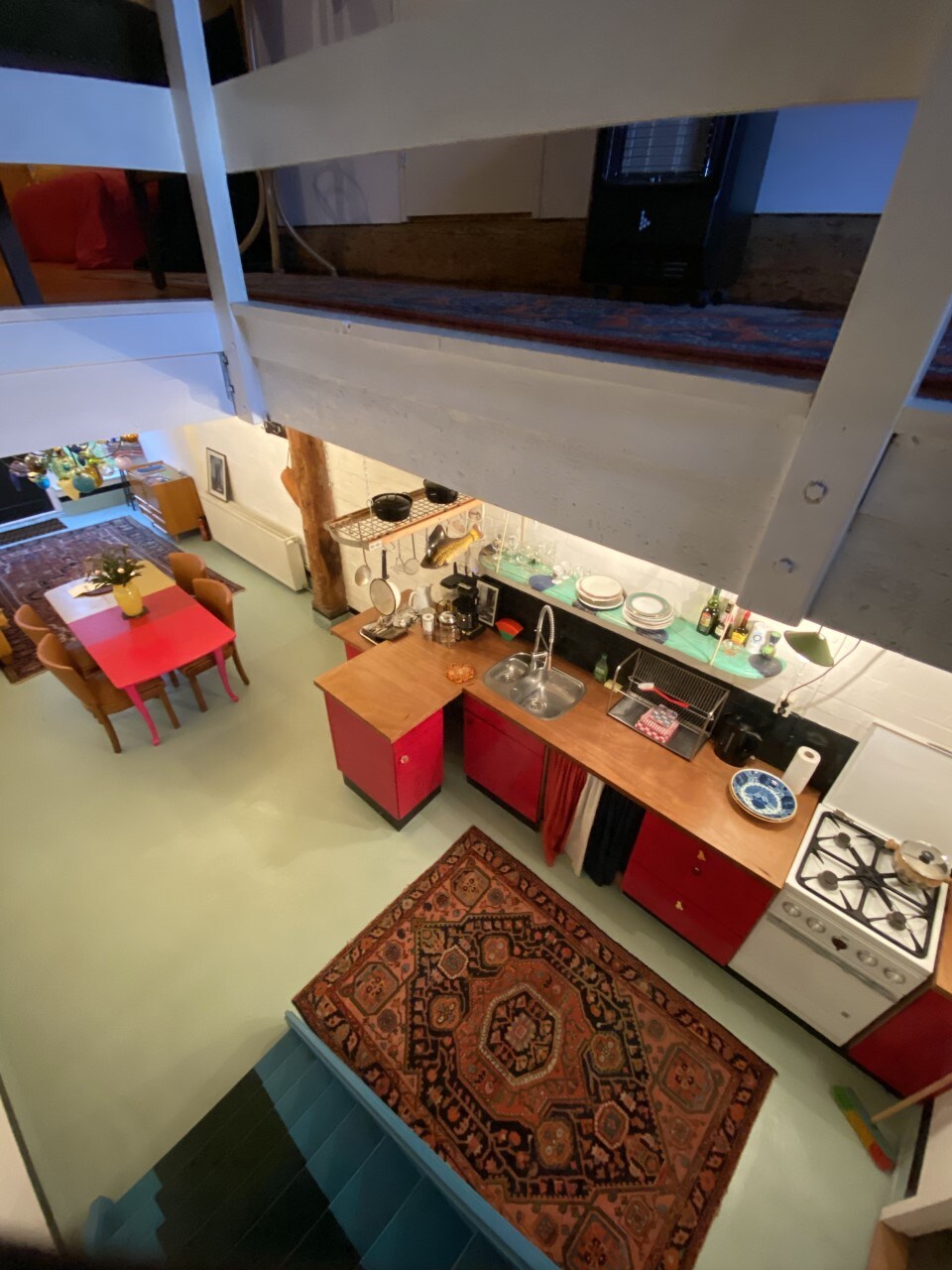 We are pleased to offer our 120m2 three-story vacation apartment. On the ground floor, the kitchen, a spacious dining table and a seating area. On the first floor is the bathroom, toilet and sleeping area. These are separated by heavy velvet curtains instead of walls and doors. An apartment with its own reality in cinematic atmosphere. Close to forest, heath, hunnebedden and water. 15 km from Giethoorn