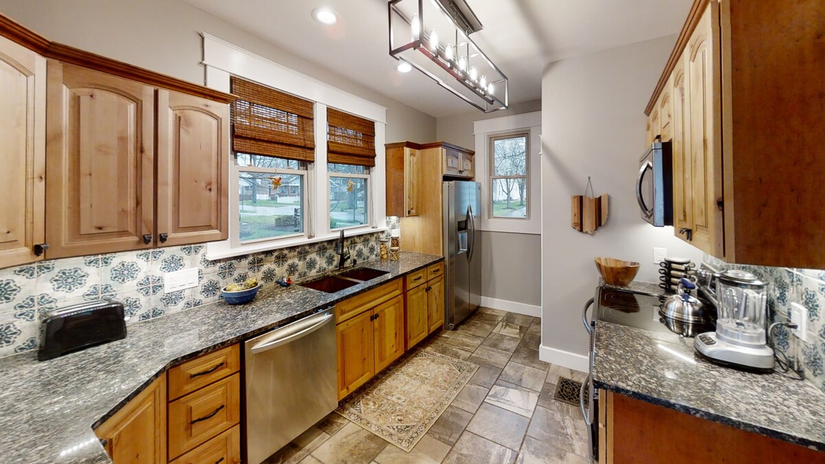 Welcome to your newly renovated one-bedroom home! This chic retreat features a spacious king bed and a comfy pull-out couch with a mattress topper for extra coziness. The gleaming kitchen boasts brand-new appliances, perfect for culinary adventures. Step outside to your private back patio, complete with a Solo Stove for warm, relaxed evenings. Plus, enjoy the convenience of being within walking distance to the vibrant downtown scene. Your ideal home away from home awaits!