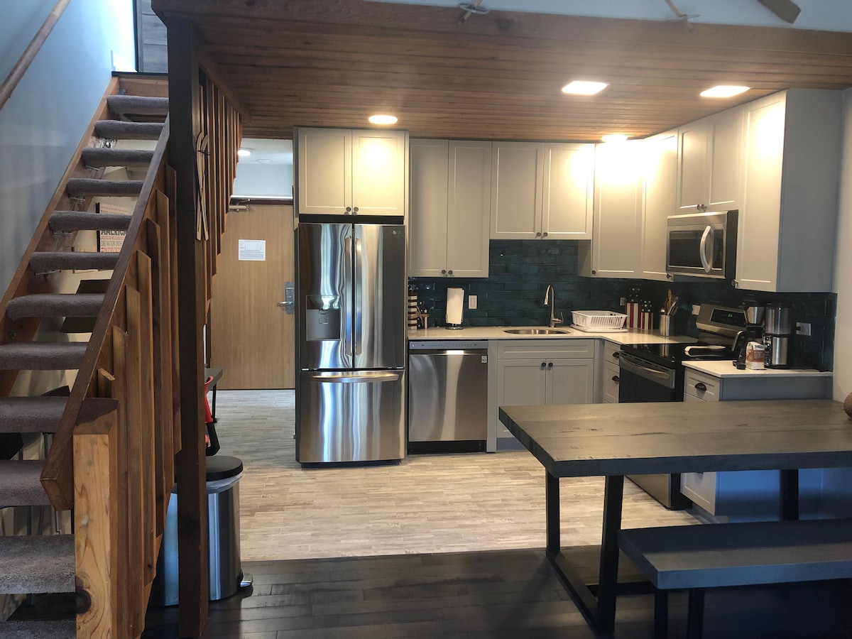 Enjoy your stay in Park City in our new remodel second floor condo with sleeping loft. The loft has a king size bed and a skylight. The main floor has a full bath, kitchen and a pullout couch. The washer/ dryer in the bathroom gives you convenient in-unit laundry. Just a short walk away is an 8 person hot tub and summer season swimming pool. Withing walking distance is rail trail, great variety of restaurants, convenient free public bus to shopping, grocery stores and historic Main Street.