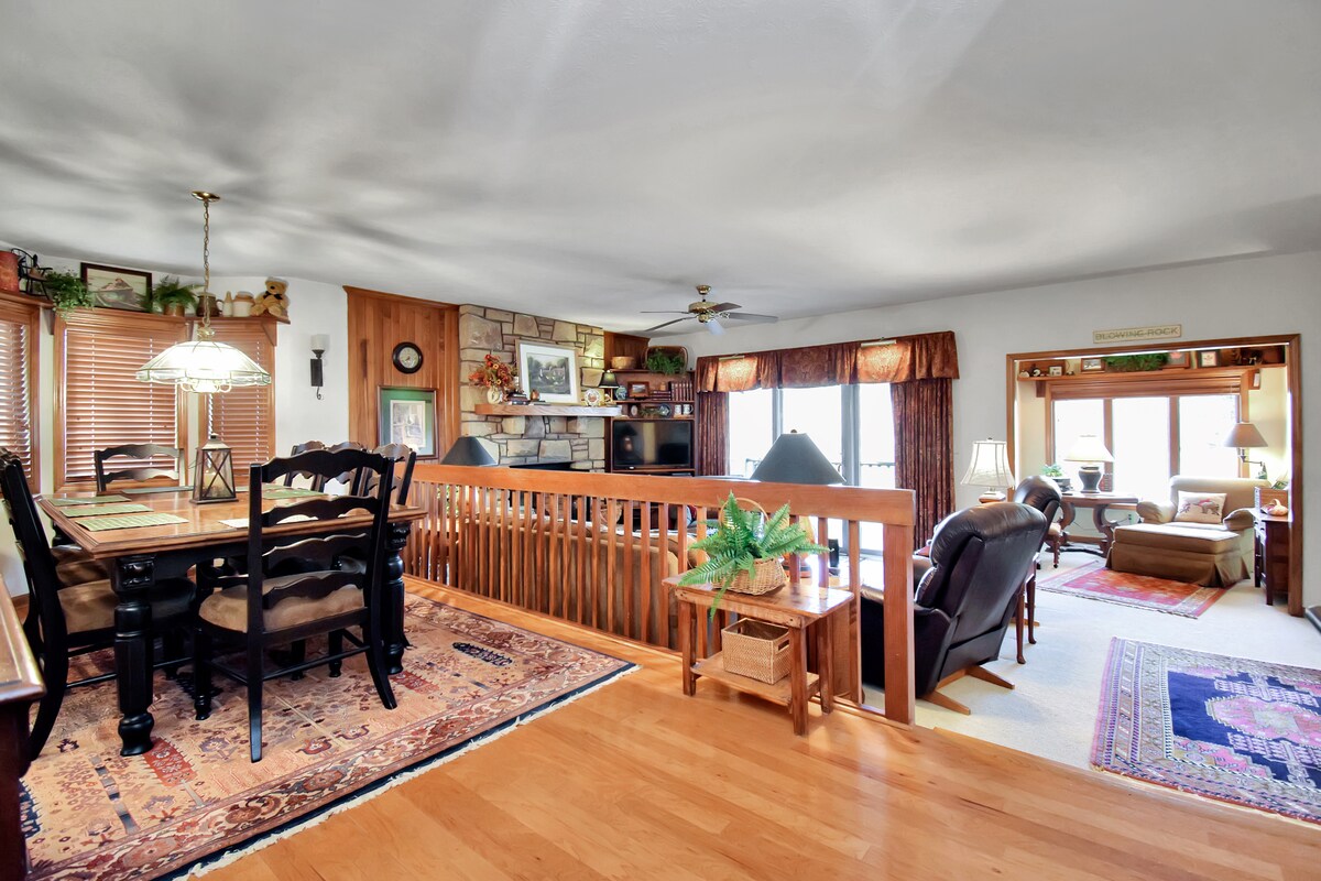 4,500 ft elevation with rare mountain-top views, including Grandfather Mountain! 750+ 5 Star Reviews! Spacious home with vintage mountain decor. Arcade, game room & tons of board games. Fast Wi-Fi, great views & comfort Light breakfast & coffee ☕ 2 min drive to Hawksnest tubing & zip lines 5 min to Otter Falls 10 min to Grandfather Winery 25 min to Boone, Blowing Rock, Banner Elk, Sugar & Beech Mtn, Tweetsie Central between Boone & Banner Elk. 300 Mbps Wi-Fi, Central A/C, W/D, Parking, HDTV