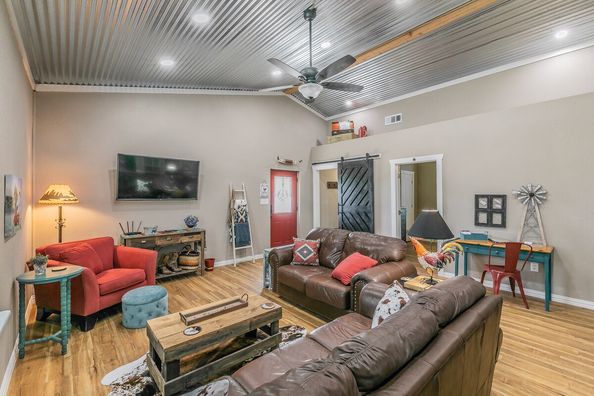 Escape to a serene 1-bedroom, 1-bath hideaway, a mere 9 miles from the heart of downtown Weatherford. As you step inside, you'll find all the modern comforts you need for a relaxing retreat, including a Smart TV, a fully stocked kitchen, and central A/C. And don't forget the complimentary coffee and a selection of hot teas, complete with all the fixings.