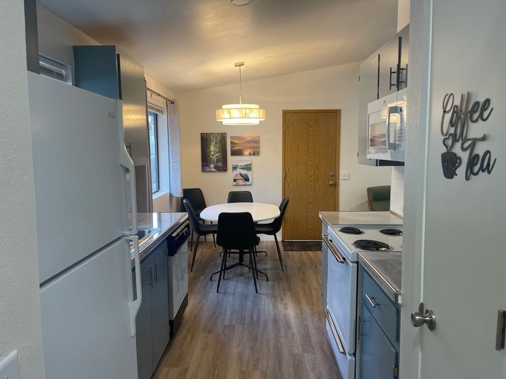 Cabin on River, with boat ramp and wadding area. Great fishing, Near Steelhead riffle, Newly renovated 3 Bedroom 2 bath, open floor plan with living room and family room with fireplace and TV. Screened-in porch for outdoor dining, plus an outdoor deck for barbequing or just moonlight gazing! Come enjoy easy access to kayaking, fly fishing, or River/side lounging! This vacation rental has everything!