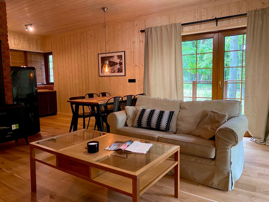 Welcome to the White House in Fuledz, a perfect place to relax. Fuleda is a quiet, peaceful place, surrounded by forests. We offer an exclusive beautiful year-round. It is designed for 6 people (possible to rent for up to 8 people). The interior of the house consists of a living room, a fully equipped kitchen and a bathroom. There are three bedrooms upstairs. We also have a spa area - a jacuzzi on the sheltered terrace and a sauna inside the cottage. A boat and a SUP board are also available. There is a beautiful beach 200m away.