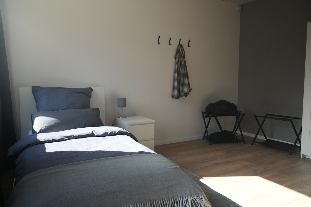Welcome to our very well equipped and air-conditioned apartment in Bielefeld Ummeln. The apartment is located exactly between Bielefeld and Gütersloh next to the source of Christinenbrunnen. By car, you can reach 15 minutes you are in Bielefeld or Gütersloh city. There are also three bus lines in the immediate vicinity. Shopping, bakery, post office, butcher are a 7-minute walk away. The apartment has a parking lot on the premises with a wallbox. Wi-Fi and fiber optic.