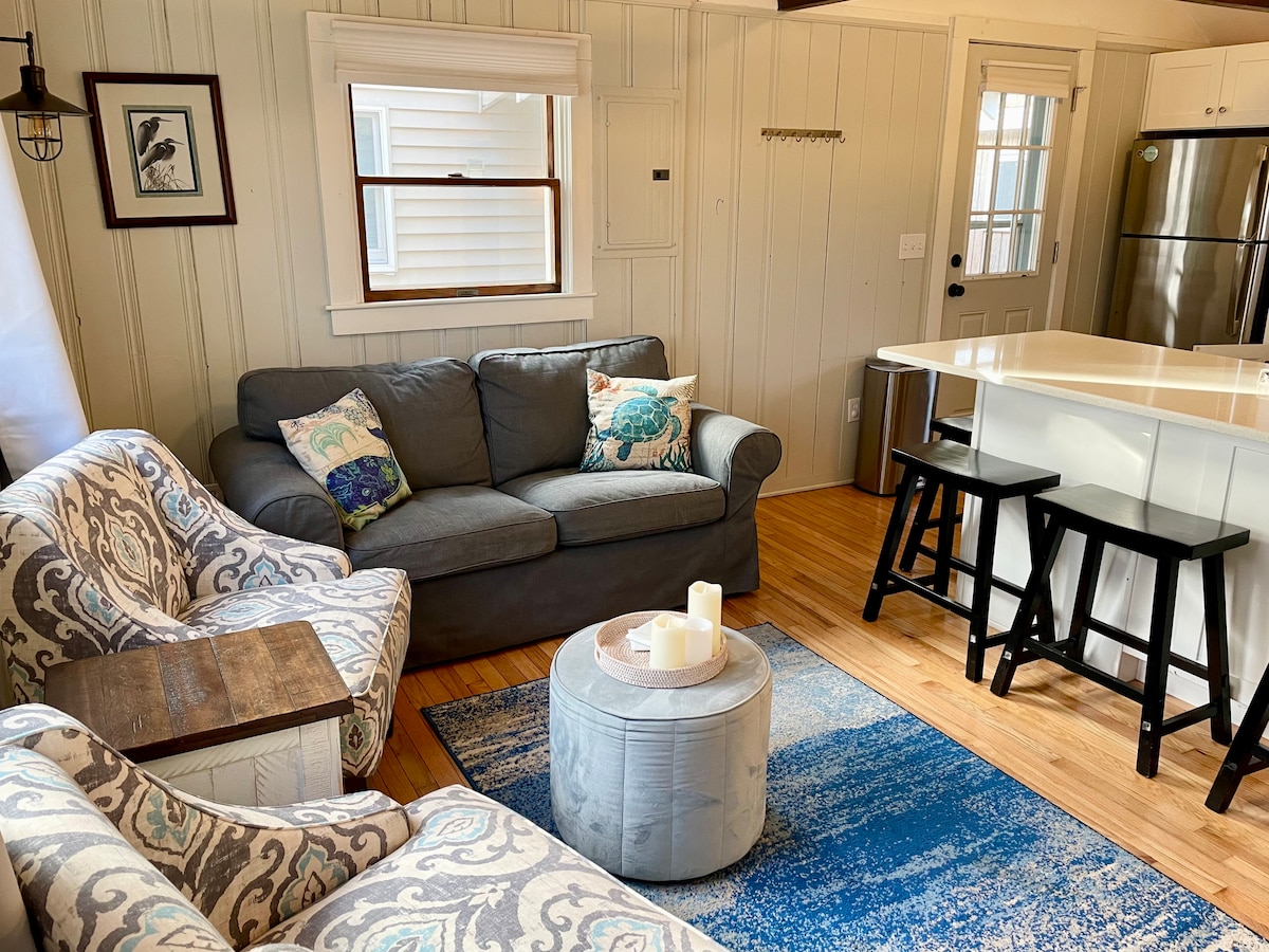 This newly remodeled, nautically themed cottage includes countless amenities designed for a fun, romantic getaway with all the comforts of home. - Bikes, paddle boards, 2-person kayak, yard games, beach chairs/towels & cooler - Outdoor fire pit and gas grill - Stocked kitchen with quality cookware, organic coffee/tea, water filtration pitcher + more - Organic, vegan, unscented, allergen-free soaps & cleaning products - Extreme COVID sanitation protocols as well as quarterly deep cleanings