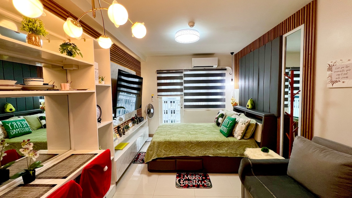 📢 PLEASE READ BEFORE BOOKING "Home Away from Home" – Studio Unit This cozy studio features 1 full/double size bed 🛏️, perfect for 2 people, plus an additional full/double size floor mattress (about 1 inch thick) 🛋️ that can comfortably accommodate 2 more guests. The extra mattress will only be set up if your party exceeds 2 guests. It’s your perfect urban sanctuary 🏙️, right in the heart of the vibrant Megaworld Complex! 🌟