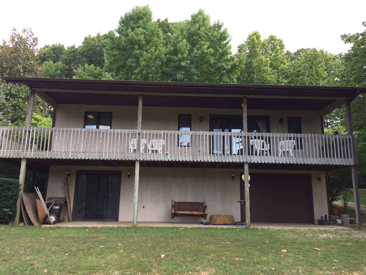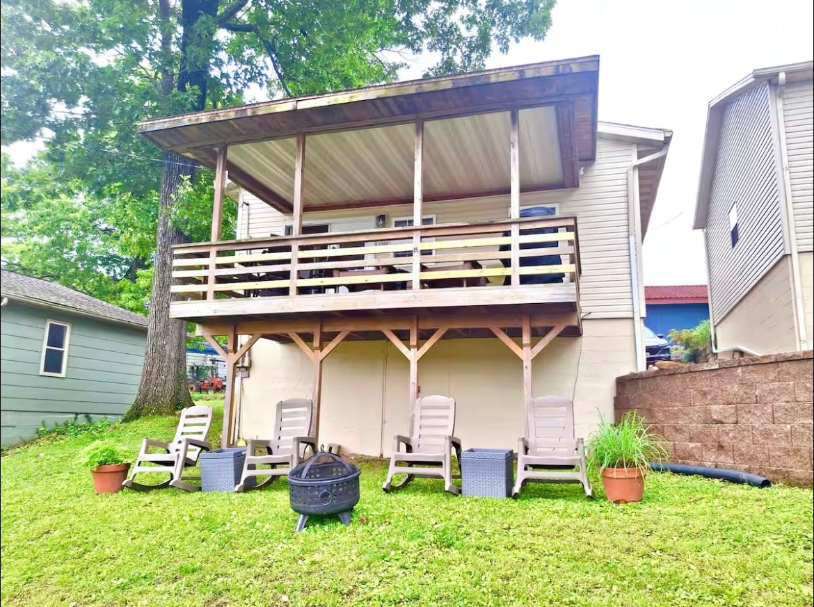 The Nut House sits on a 200 foot bluff overlooking Table Rock Lake. We are part of the Emerald Beach community. The best part of this 3 BR 2 BA home is the 900+ SF deck. There is a charcoal BBQ grill and comfy lounge chairs on the deck for summer, and an easy-to-light fire pit for winter (wood included). Lake access/boat ramp is 1/4 mile down this quiet street. Deer roam the neighborhood and on rare occasions you can spy fox and bald eagles.